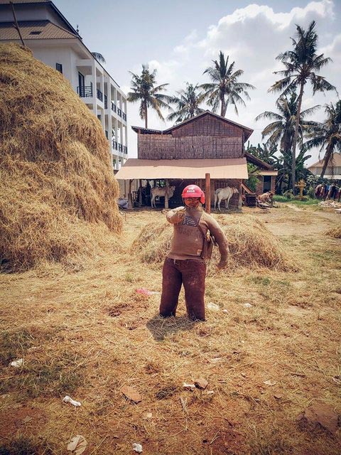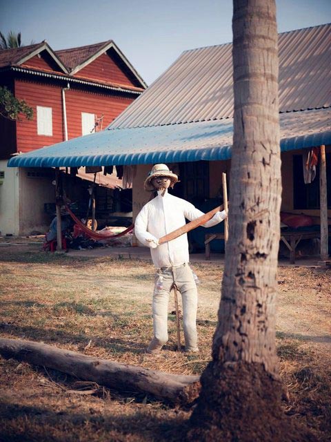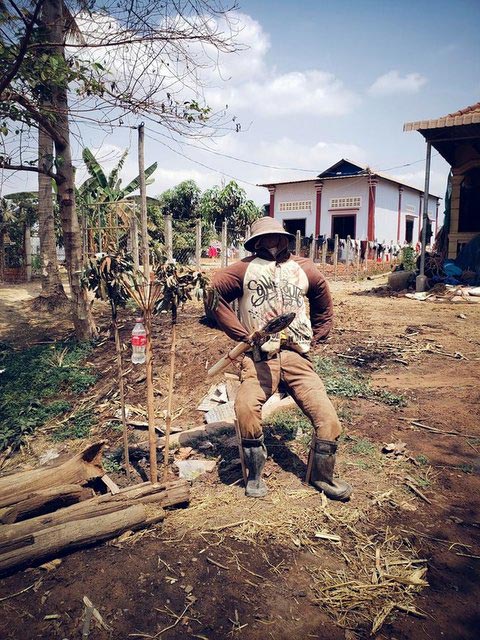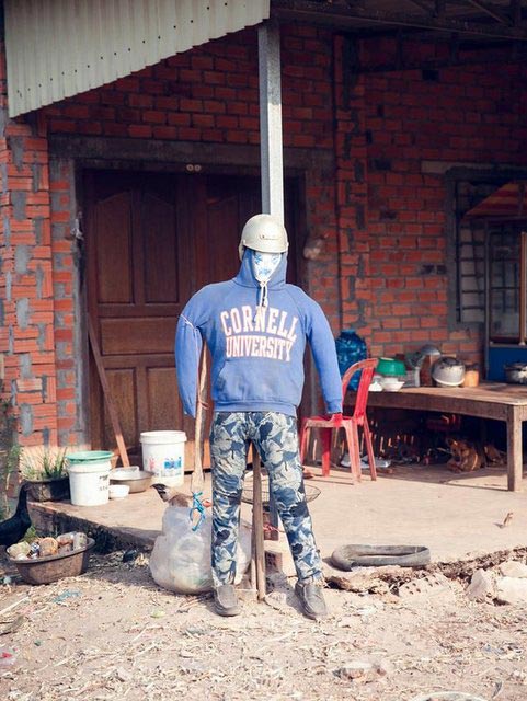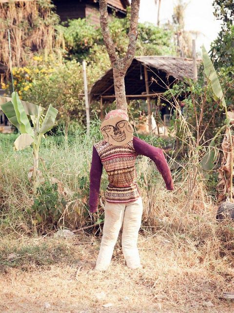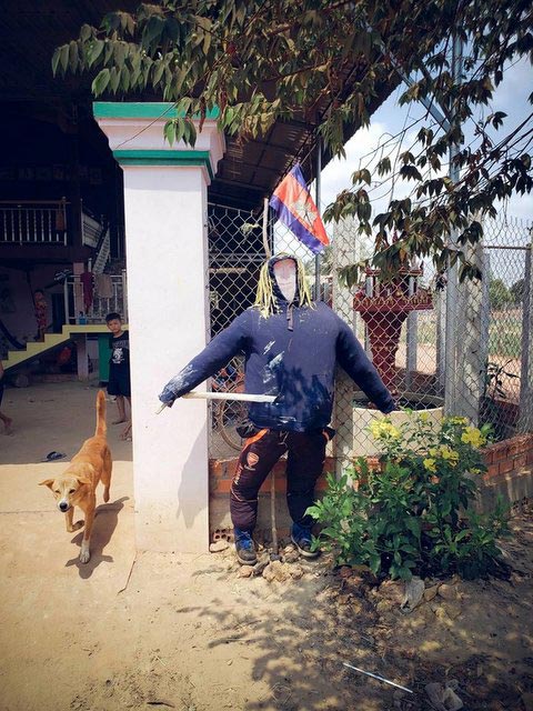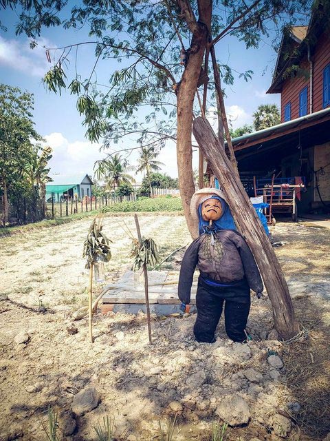 In Cambodia it’s not uncommon to see scarecrows, called ting mong in Khmer, propped up outside people’s houses or gardens. Ting Mong aren’t there to protect the crops from birds, rather, they are there to frighten away ghosts and evil spirits. You often won’t see any ting mong for months at a time in Cambodia, but in times of difficulty they start to multiply. Now, during the coronavirus pandemic, ting mong are everywhere.