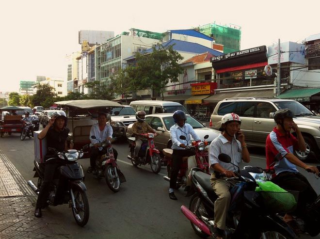 “Welcome to Phnom Penh, you’d better get used to it,” he added as he sauntered casually across the road, weaving in and out of the constant stream of traffic.